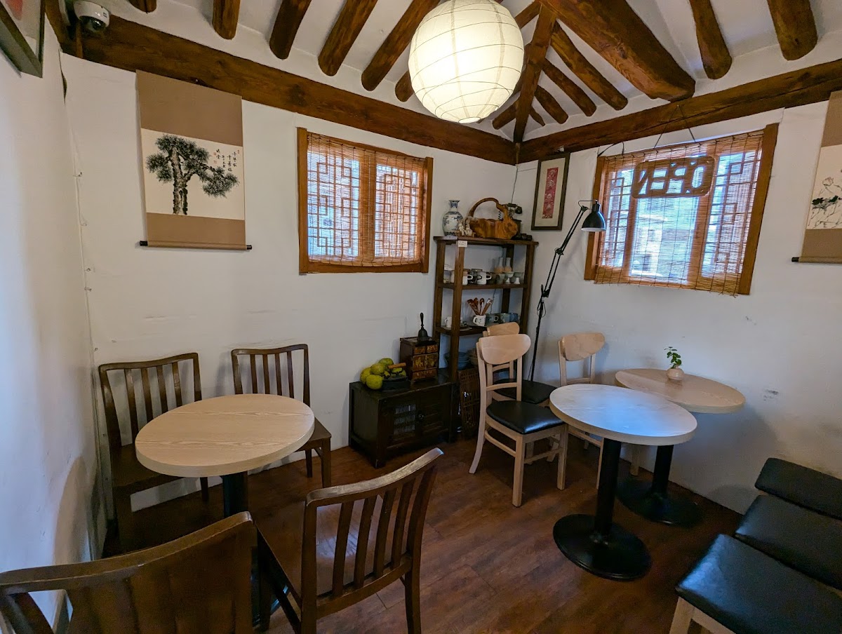 Housed in a beautifully preserved hanok (traditional Korean house), the moment you step through the door, you are greeted by the warm ambiance and the rustle of soft jazz music floating gently in the air. The café's decor merges nostalgia and authenticity with its quaint wooden beams, traditional walls, and those lovely little knick-knacks that echo the artistry of Korean heritage. It's a place where every corner tells a story, and it invites you to linger just a little longer.